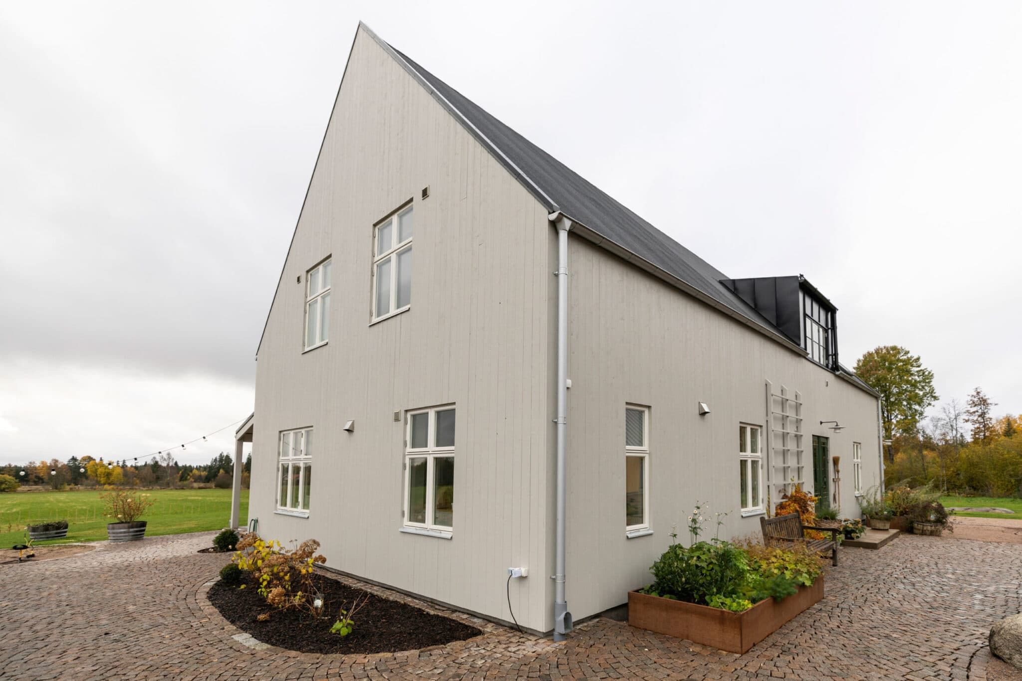 På en tomt i naturskönt läge i utkanten av staden ligger Villa Skir. Byggherrarna själva har ritat planritningen och vi har tillsammans med dem tagit fram den exteriöra utformningen och ritningsunderlaget.
