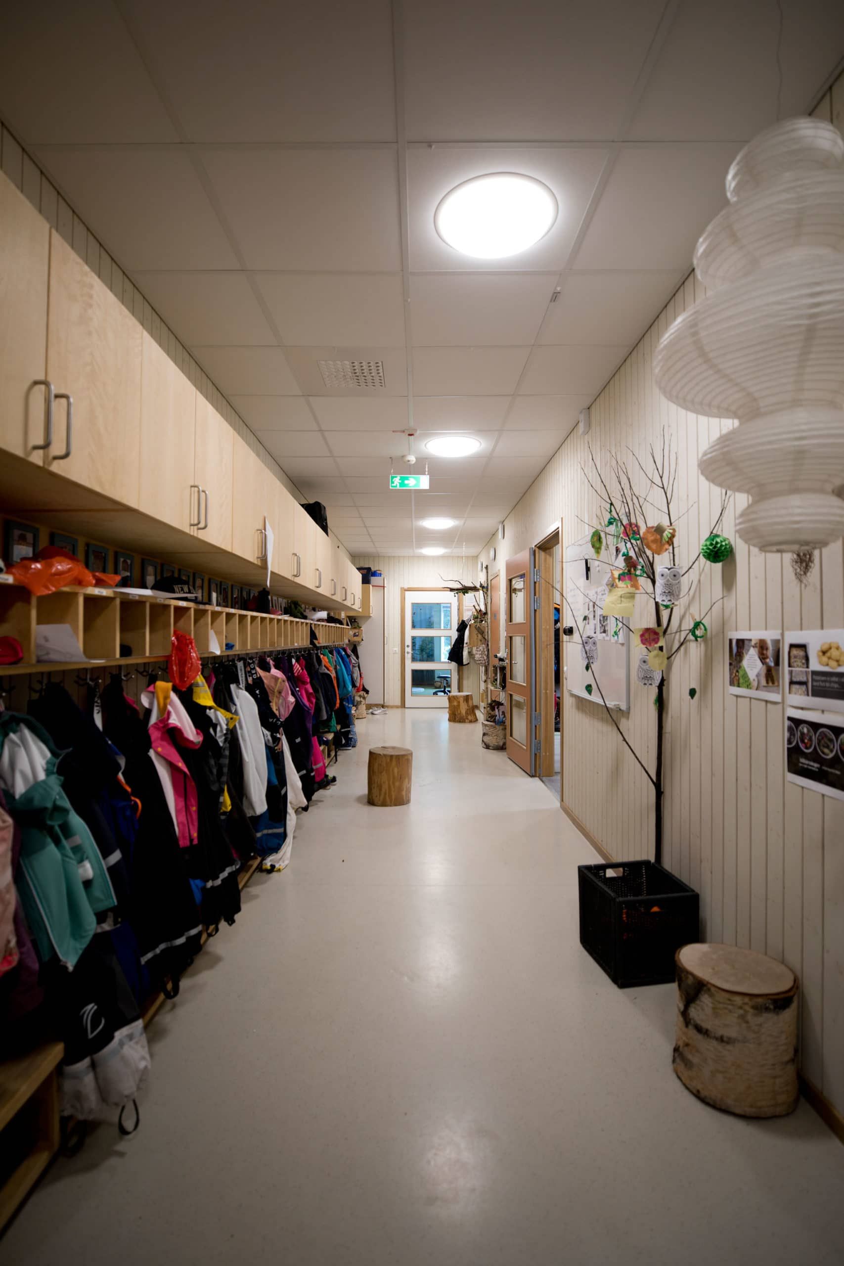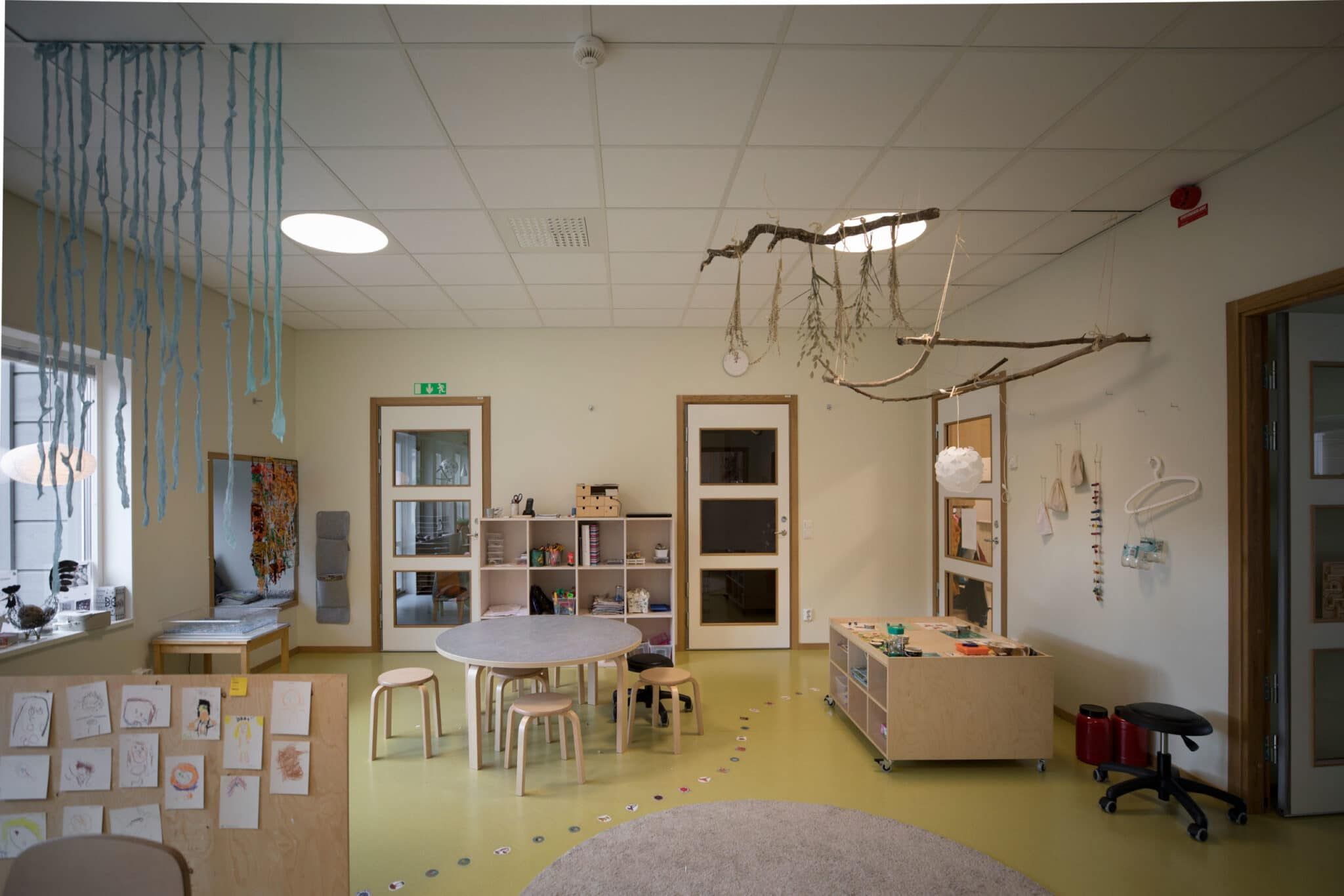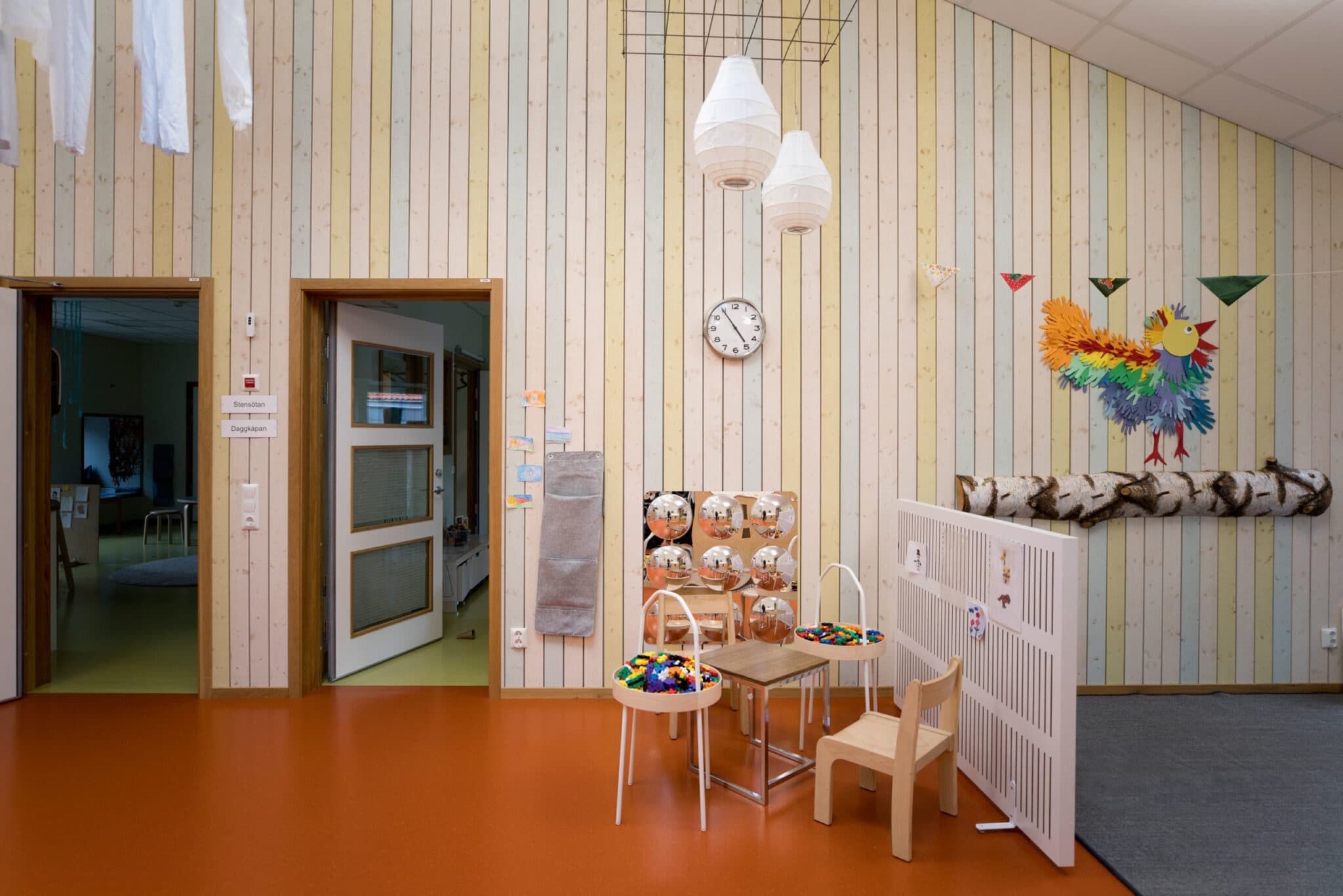 Björkåkra förskola är ritad av arkitekt Sven-Ingvar Åkesson och vi fick uppdraget att kulörsätta. Förskolan har sex avdelningar, tre för barn mellan 1-3 år och tre för de lite äldre barnen 3-5 år.