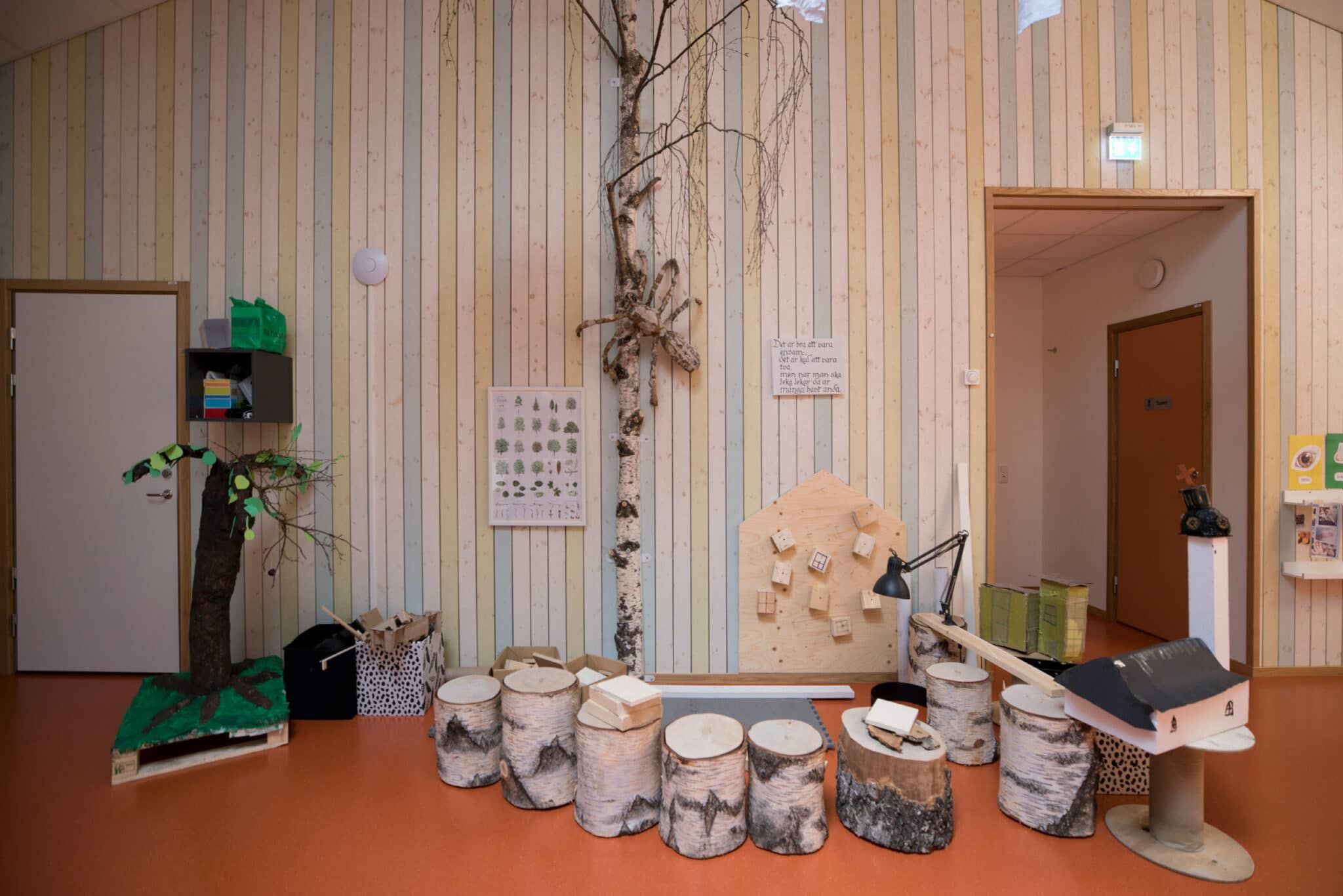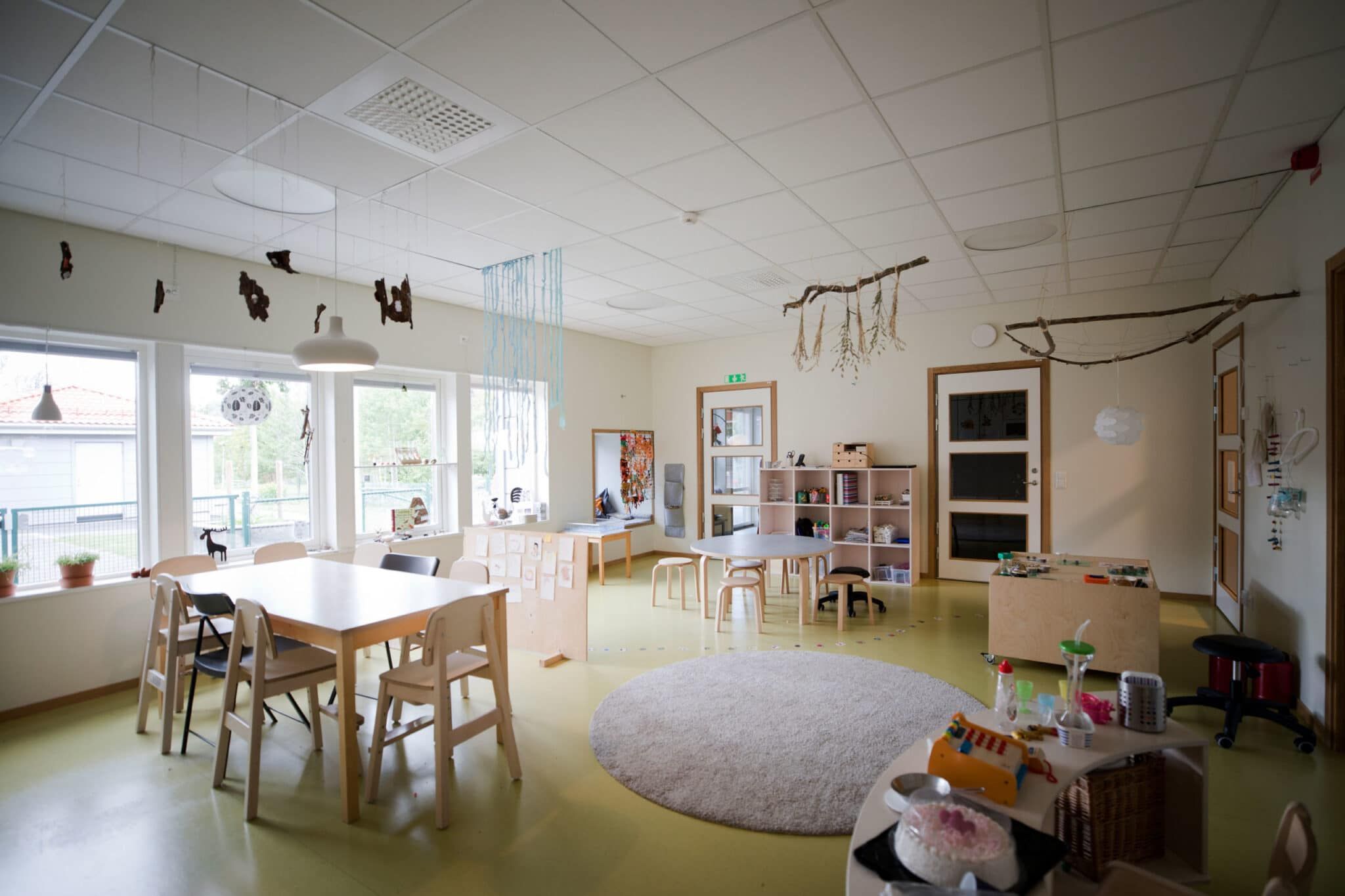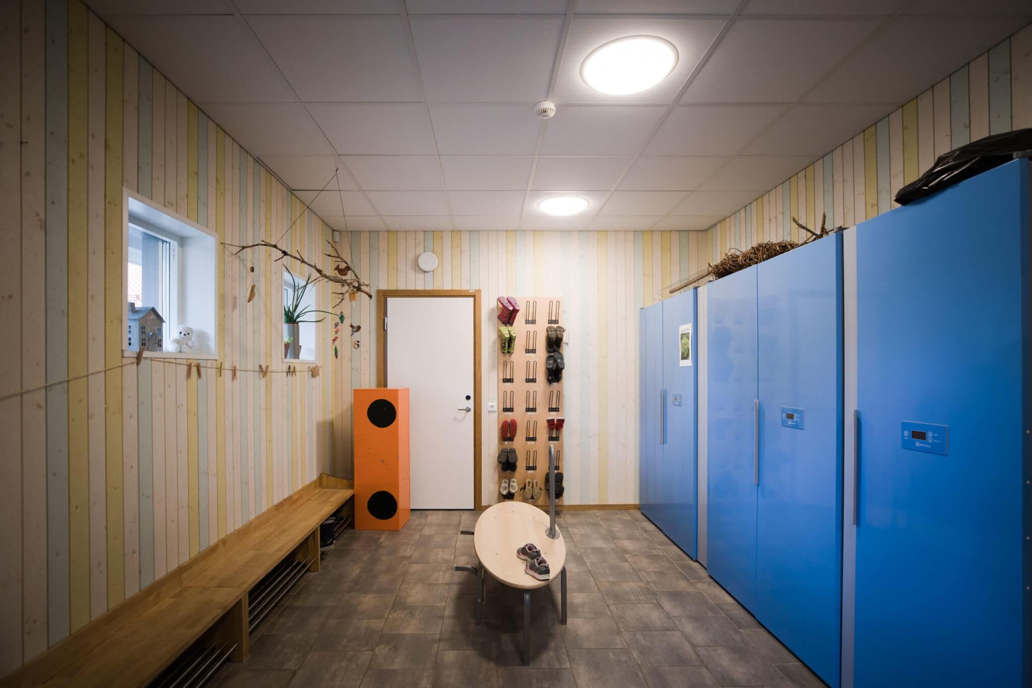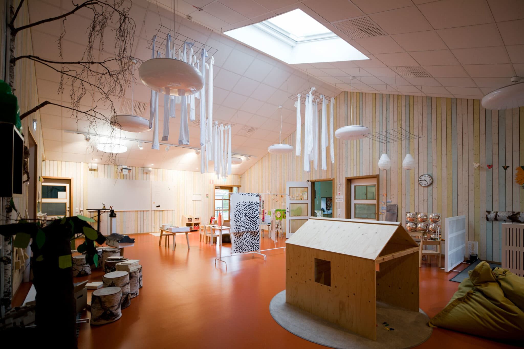 Björkåkra förskola är ritad av arkitekt Sven-Ingvar Åkesson och vi fick uppdraget att kulörsätta. Förskolan har sex avdelningar, tre för barn mellan 1-3 år och tre för de lite äldre barnen 3-5 år.