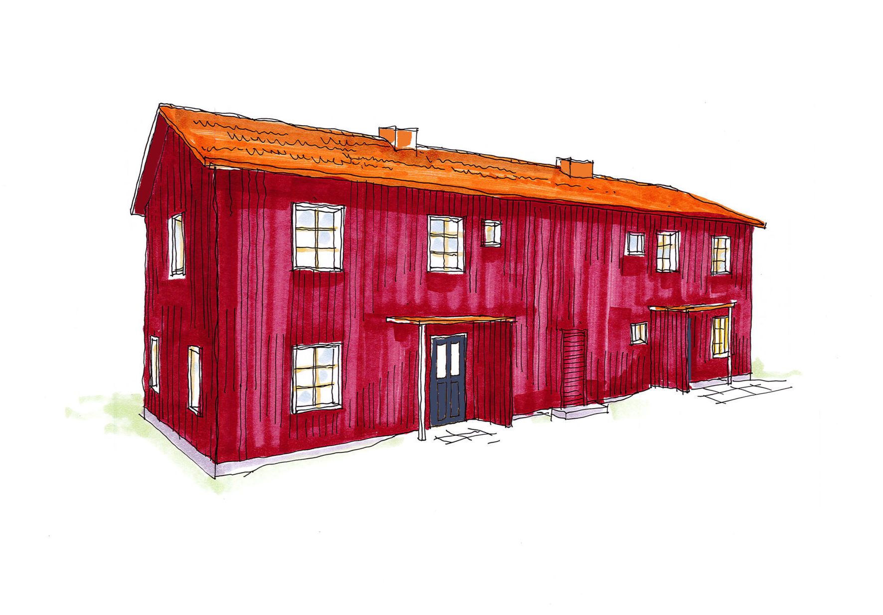 I ett tidigt skede kom vi med i skissprocessen för att ta fram nya hyreslägenheter åt BiWi bygg. Efter ett antal förslag och omtag landade vi till slut i vad som idag är fyra parhus med totalt åtta lägenheter.