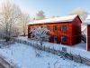 Den faluröda fasaden fogar in sig fint med den befintliga bebyggelsen på tomten, men bryter av med sitt moderna formspråk med enkla och eleganta detaljer.