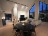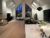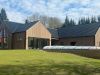 Stora välkomnande sociala ytor med dubbel takhöjd och en vinkel i en och en halvt plan med sovrum och mer privata sällskapsrum. Mot uteplatsen finns generösa skjutglaspartier och de stora spetsiga glasytorna vänder sig mot utsikten ner mot ån.