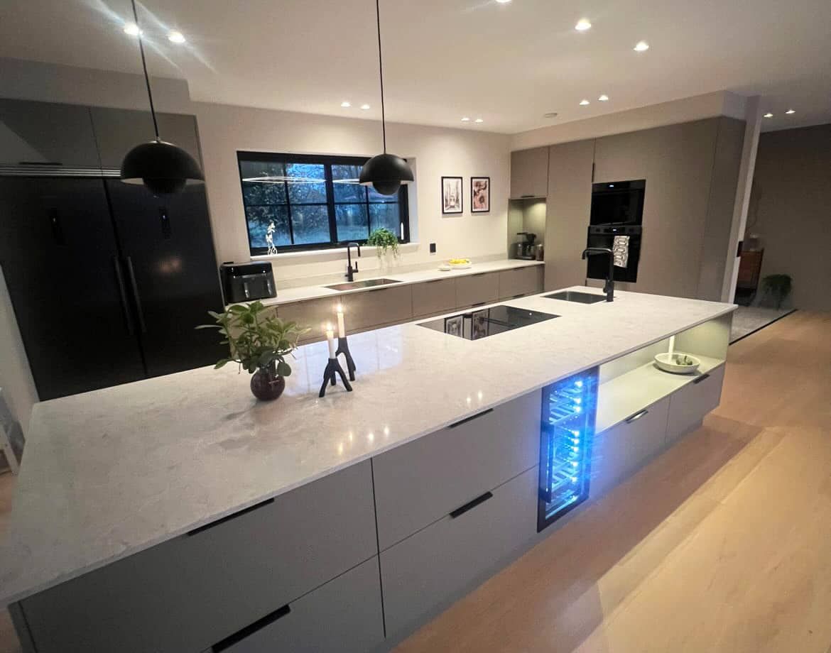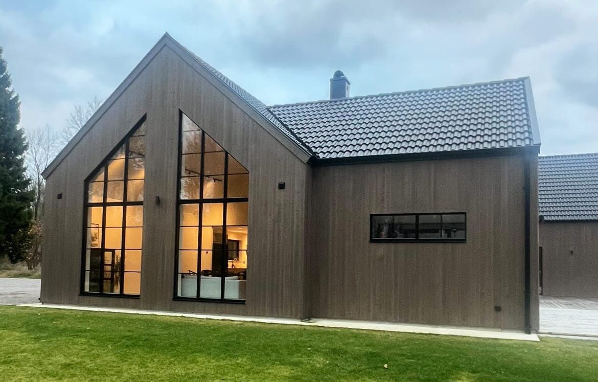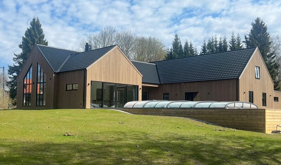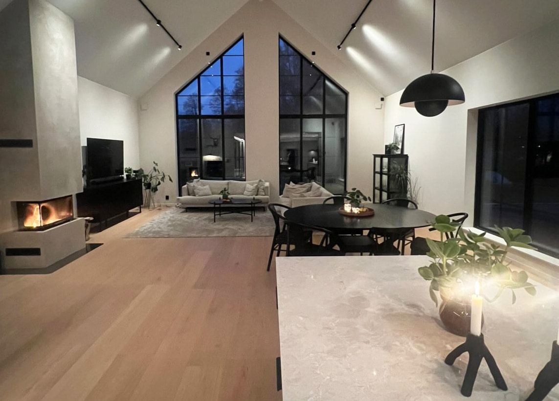 På den här fastigheten stod ett litet hus i ganska dåligt skick. Här fanns också fornlämningar och begränsningar på grund av strandskydd. Men det stoppade inte drömmarna om en unik villa helt utformad efter familjens önskemål.