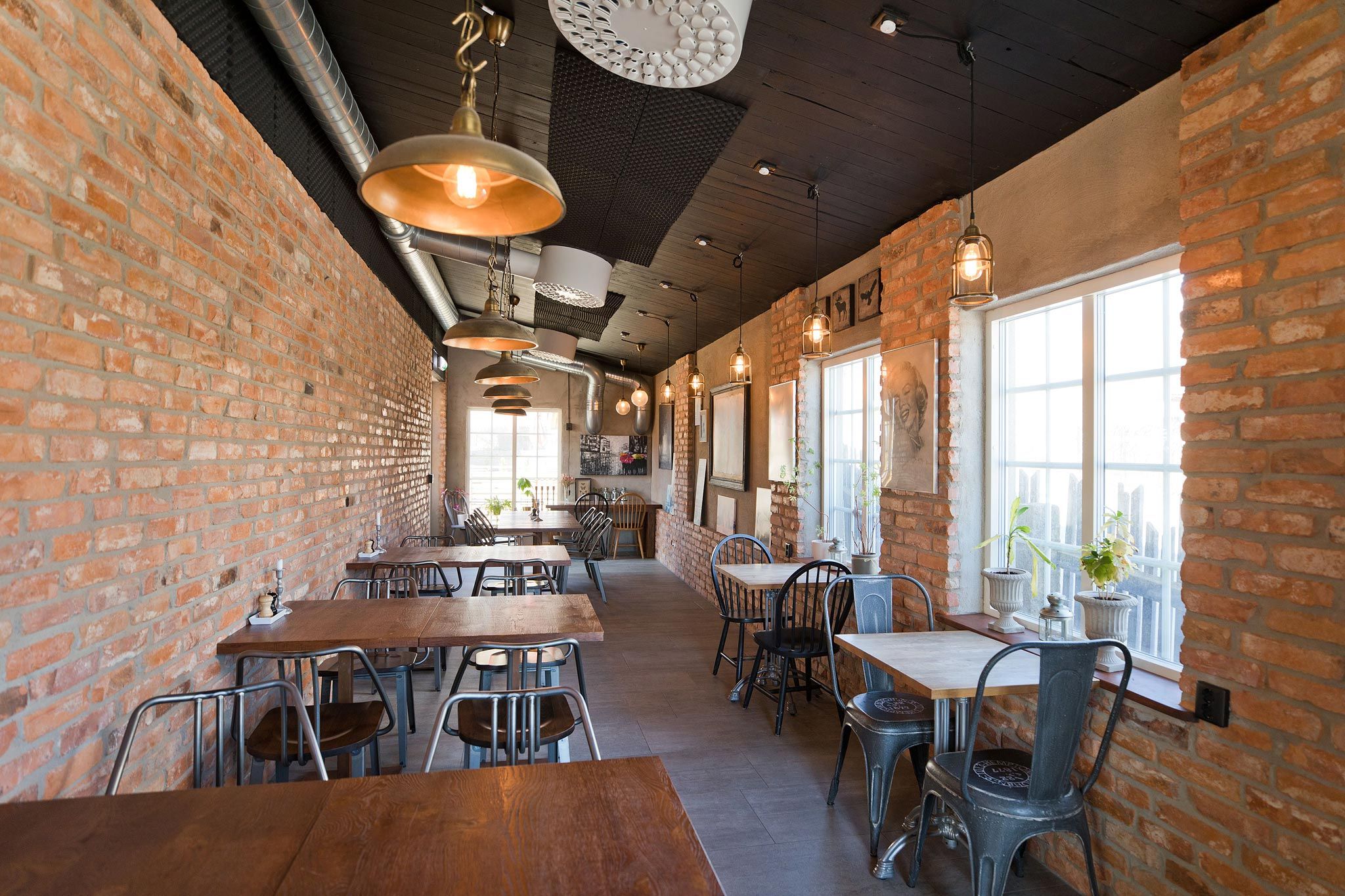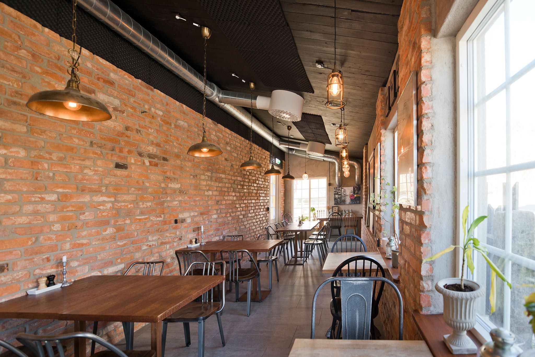 Placeringen intill den slutande gatan och den lite mer trafikerade Centralgatan ställde krav på utformningen där utmaningen blev att få till så många sittplatser som möjligt i den smala huskroppen.